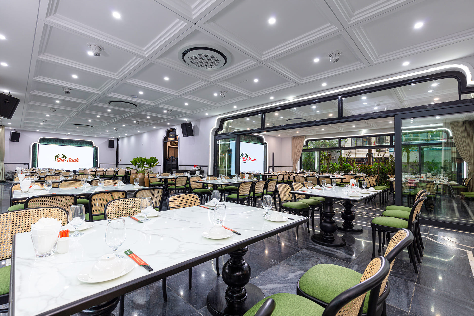 Với thiết kế hiện đại ấn tượng, nhà hàng sở hữu 2 tầng với 14 phòng VIP, 3 phòng hội nghị có thể đáp ứng linh hoạt từ 40 đến 120 khách và 1 phòng President sang trọng. Kết hợp cùng việc trang trí cây xanh dọc theo các hành lang, Ghẹ Xanh tạo ra không gian riêng tư mà vẫn thoáng đãng, đem lại cho khách hàng cảm giác vừa ấm cúng vừa rộng rãi.